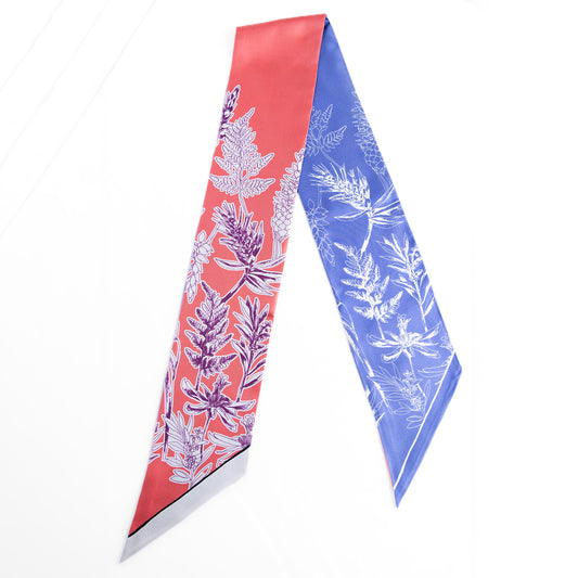 Botanical Elegance Long Silk Scarf in Coral and Periwinkl (13 x 140 cm)