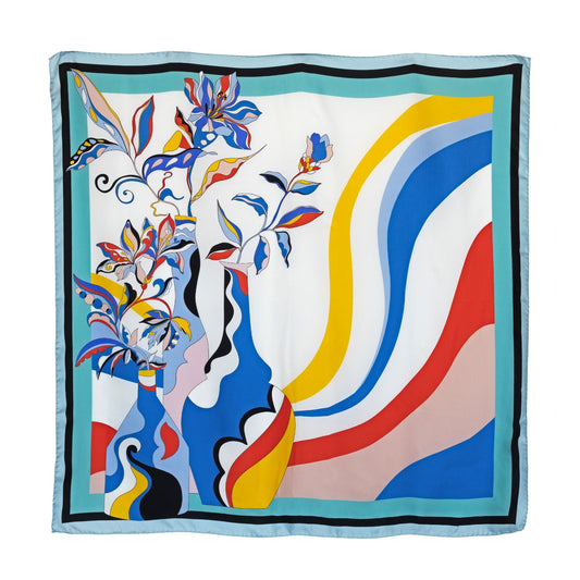 Blue Powder Serene Bloomy Flower Square Silk Scarf