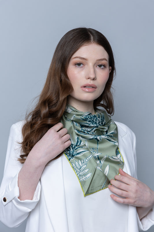 Botanical Symphony Silk Triangle Scarf in Sage (100 x 100 x 14 cm)