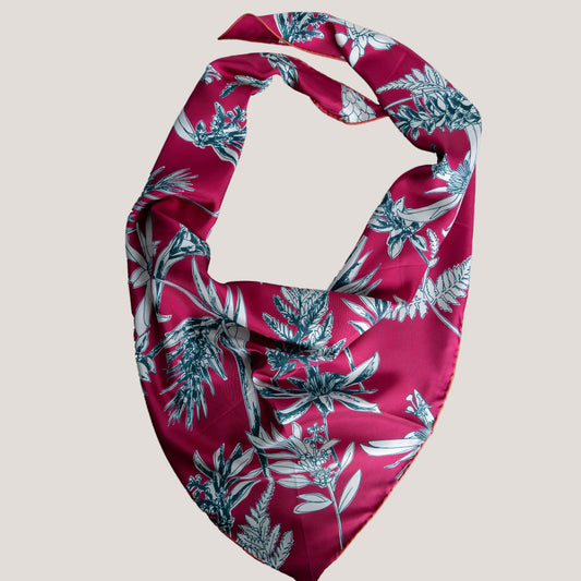 Botanical Symphony Silk Traingle Scarf in Magenta (100 x 100 x 14 cm)
