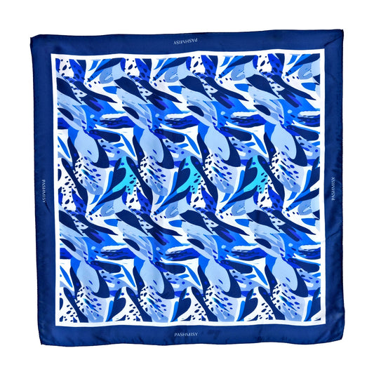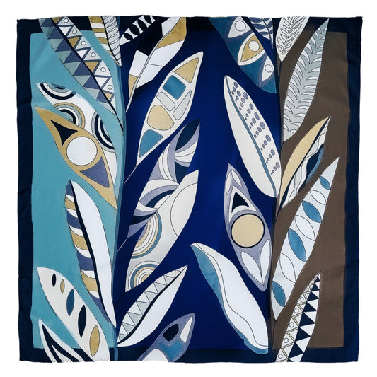 Teal Leaves Charm – Italian Silk Scarf Bandana (53 x 53 cm)