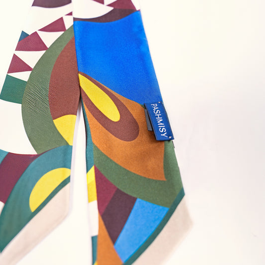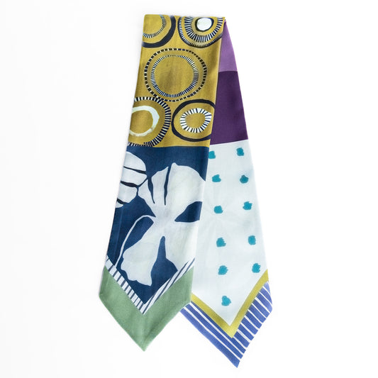 Abstract Bloom Skinny Silk Scarf – Mustard & Purple (11 x 85cm)