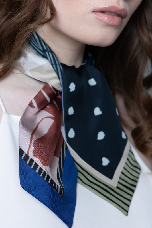 Midnight Bloom Silk Scarf in Navy and Sage