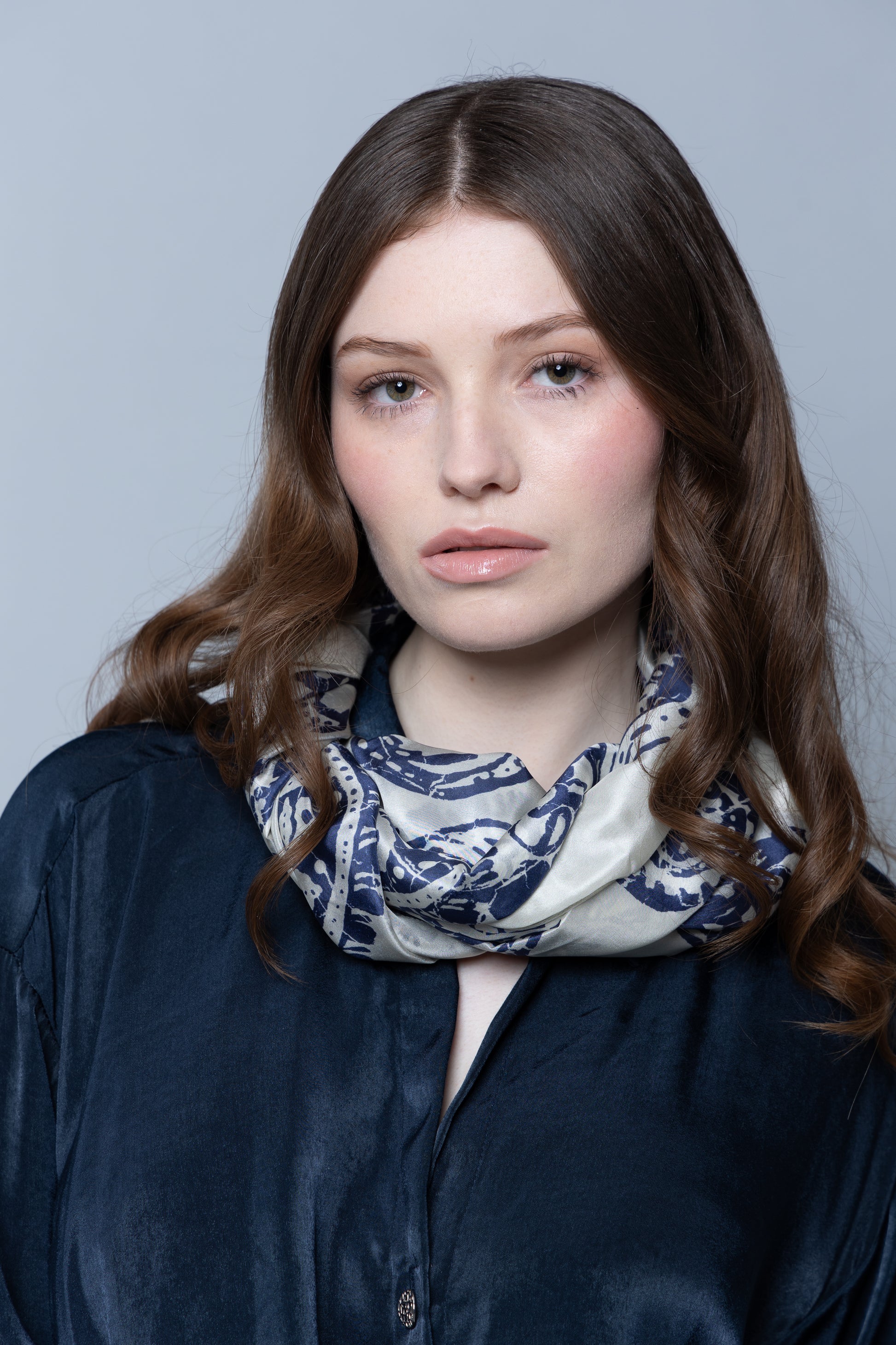 Cream Leaves Charm – Italian Silk Scarf Bandana (53 x 53 cm)